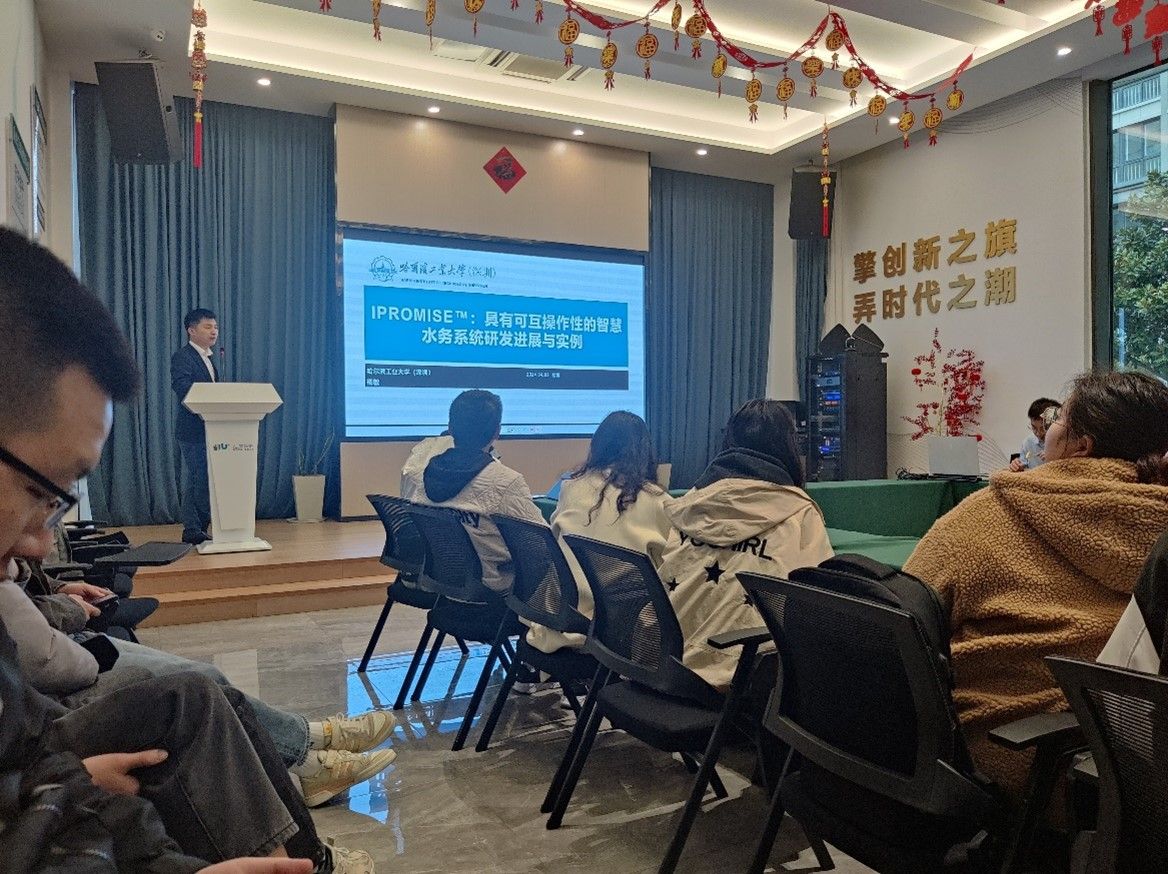 杨敏副研究员做了“IPROMISE™:具有可互操作性的智慧水务系统研发进展与实例”的学术报告。杨教授在报告中,分享了其参与的智慧水务系统研发和科技成果转化活动,开发水务能效计算和优化的基础模型和软硬件设施等典型案例。在师生交流环节,刘浩杰同学对杨教授的课题进行提问,杨教授就“互联网+智慧水务”的未来趋势展开描述。