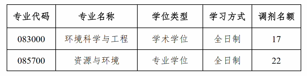 2. 学位类别要求:学术学位专业(环境科学与工程)可接收第一志愿报考专业相同或相近的学术学位或专业学位的考生调剂;专业学位专业(资源与环境)可接收第一志愿报考专业相同或相近学术学位或专业学位的考生调剂。